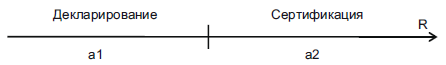 – если значение риска для продукции попало в левую часть шкалы (зона a1), где для данной продукции наиболее адекватной формой подтверждения соответствия является декларирование;