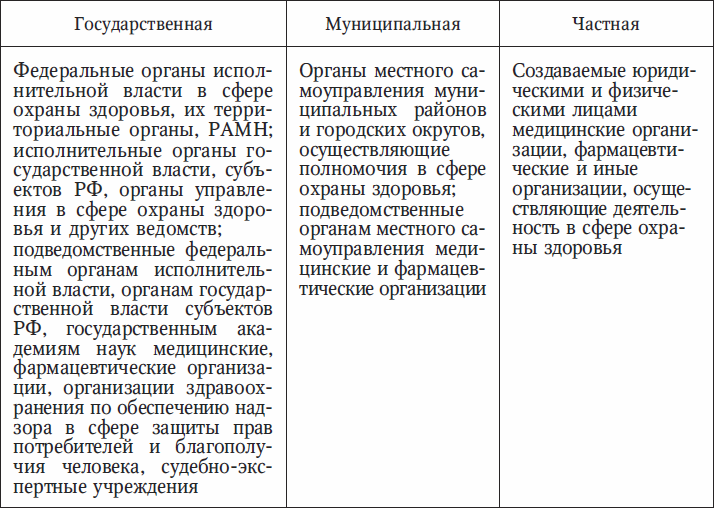 По Российскому законодательству выделяют следующие системы здравоохранения (табл. 1).