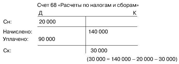 Например, на начало периода в организации была переплата по налогу на прибыль в сумме 20 000 руб. (дебиторская задолженность). В течение периода был начислен налог в сумме 140 000 руб. (кредиторская задолженность), а уплачено в бюджет – 90 000 руб.