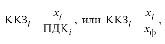 где ККЗ. – коэффициент концентрации загрязнения для /-го вещества; ПДК. – предельно-допустимая концентрация /-го вещества; х. – содержание /-го загрязняющего вещества; – фоновое содержание этого вещества в почве.