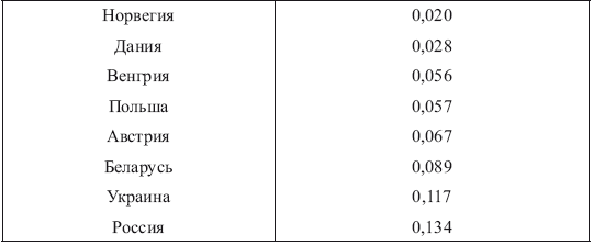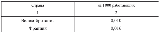 В табл. 1.1 приводятся данные о производственном травматизме в странах Европы.