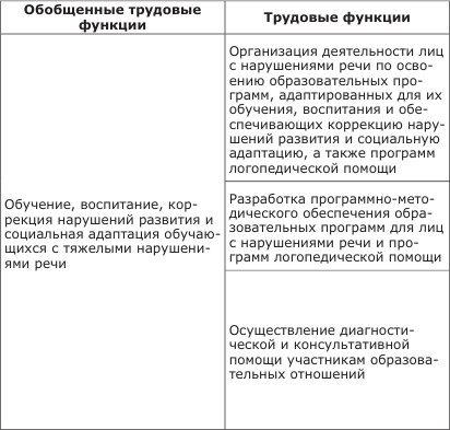 Необходимые знания: законодательство о правах ребенка, о правах инвалидов; законы и иные нормативно-правовые акты, регламентирующие образовательную деятельность; федеральные государственные образовательные стандарты; требования к адаптированным основным общеобразовательным программам, адаптированным образовательным программам; правила по охране труда; требования к безопасности образовательной среды для обучающихся с ограниченными возможностями здоровья; теории, закономерности, принципы построения и функционирования систем образования лиц с ограниченными возможностями здоровья, современные тенденции развития образования лиц с нарушениями речи, оказания им коррекционной помощи; основы поликультурного образования, методы и технологии поликультурного обучения, особенности региональных, этнокультурных, языковых условий реализации адаптированных основных общеобразовательных программ; клинико-психолого-педагогические особенности разных категорий лиц с ограниченными возможностями здоровья; содержание и технологии проведения коррекционных занятий; современные педагогические технологии реализации деятельностного, компетентностного, индивидуально-дифференцированного подходов с учетом возрастных и индивидуальных особенностей лиц с ограниченными возможностями здоровья; пути достижения и способы оценки результатов освоения образовательных программ и (или) программ коррекционной помощи лицами с ограниченными возможностями здоровья; требования к оснащению и оборудованию кабинетов современными образовательными средствами, техническими средствами, дидактическими средствами, средствами коррекционной помощи; нормы современного русского литературного языка; особенности семейного воспитания лиц с ограниченными возможностями здоровья.