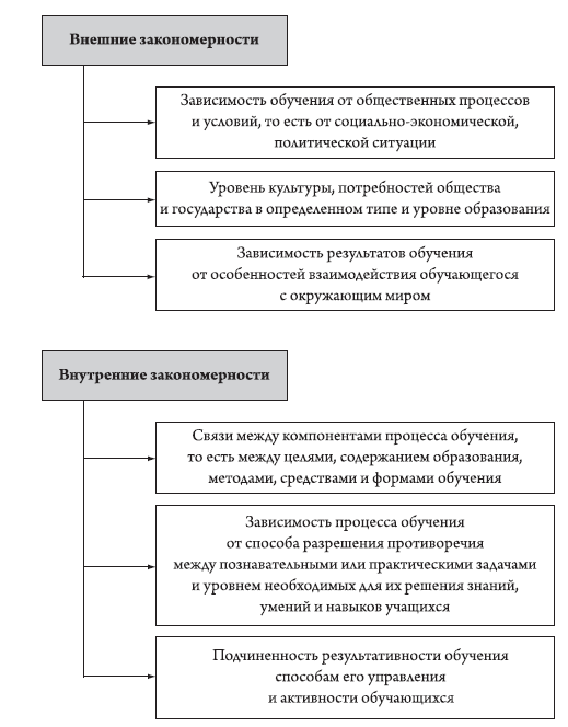 Между составными частями процесса обучения существую определенные закономерности (см. схему 5).