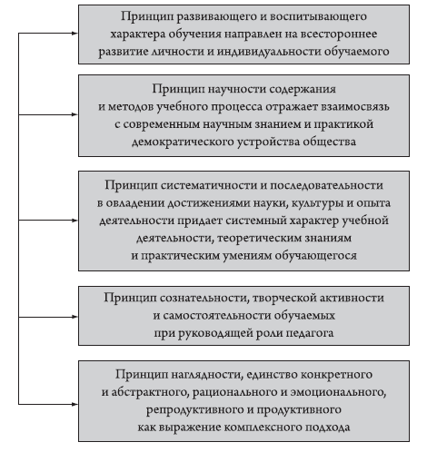 1. Система принципов, каждый из которых выступает в качестве руководящих правил деятельности, определяющих как характер взаимосвязи преподавания и учения, так и специфику деятельности преподавателя и обучающихся. Именно принципы служат ориентиром для конструирования определенного вида обучения.