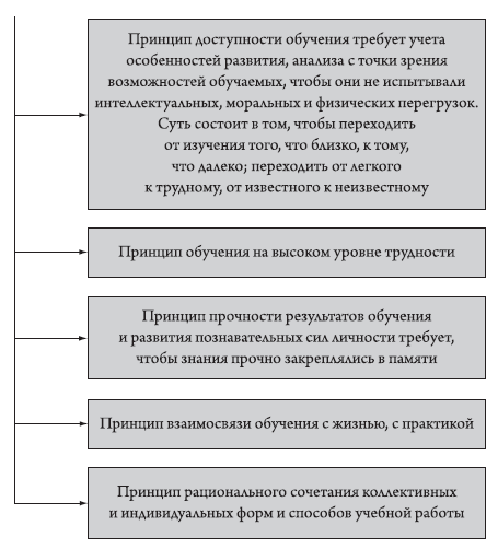В процессе обучения студентов в вузе необходимо ориентироваться не на отдельные принципы, а на их систему, обеспечивая научно обоснованный выбор целей, отбор определенного материала, методов и средств организации деятельности обучаемых и создание благоприятных условий для обучения.