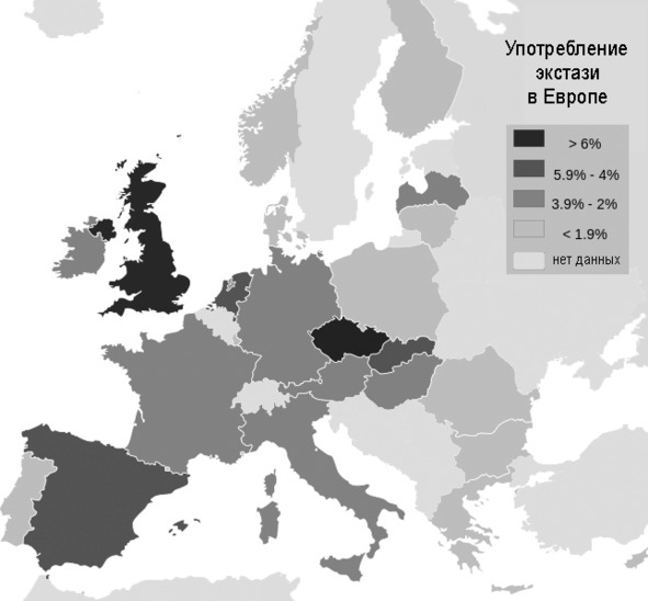 Чехия в 2010 году приняла закон, по которому каждый желающий без последствий может иметь до 1г кокаина, 1,5г героина, 2г первитина (уличное название метамфетамина), 5г гашиша и 15г марихуаны.126 С 2013 года в Чехии разрешено продавать марихуану в аптеках по рецепту врача.127 Разрешается также выращивать в домашних условиях до пяти кустов конопли и до 40 галлюциногенных грибов.