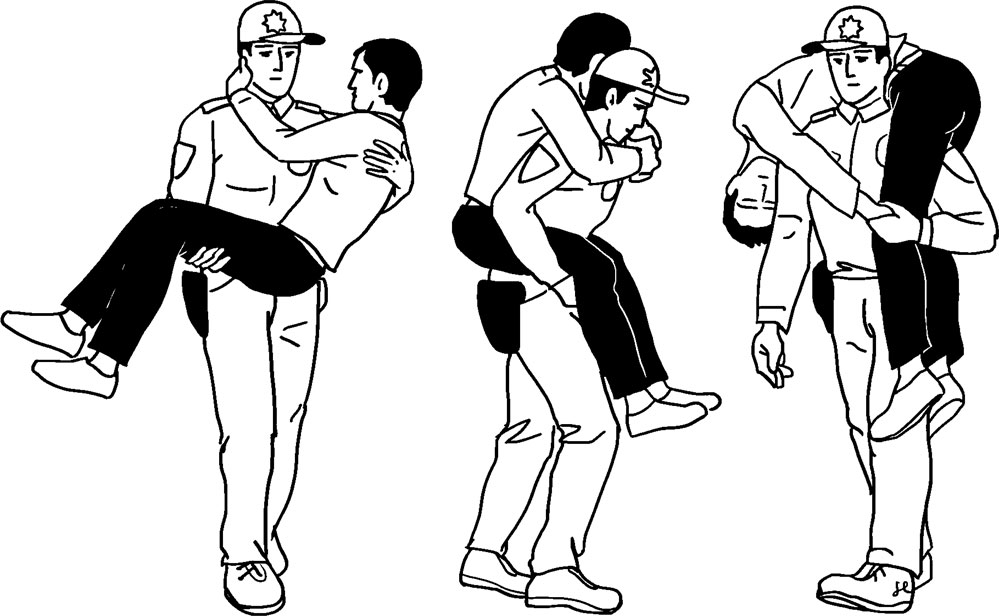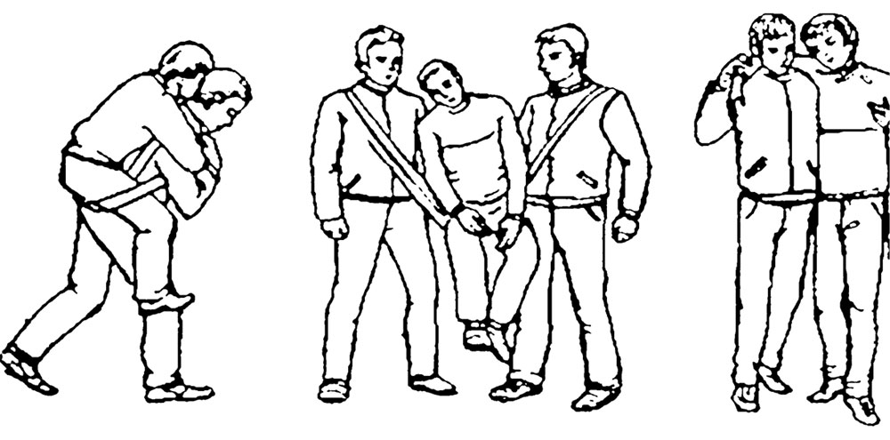 – піднімати або опускати постраждалого за допомогою м’язів ніг;