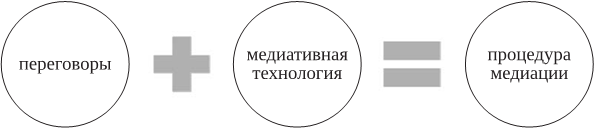 Для разграничения частной и интегрированной медиации представляется возможным взять за основу предложенное С.И. Калашниковой определение медиации как единства двух компонентов – переговоров сторон и медиативной технологии, каждый из которых, по мнению автора, может применяться обособленно[182]. Медиация как процедура характеризуется наличием обоих компонентов (см. рис. 5), что не исключает использование медиативной технологии как универсального инструмента урегулирования любых разногласий, который может быть интегрирован в деятельность любых специалистов.