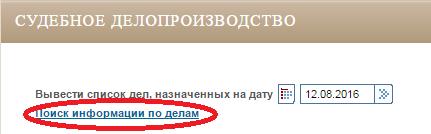 К примеру, на официальных сайтах судов субъектов РФ, районных и приравненных к ним судов тексты судебных актов размещаются в разделе «Судебное делопроизводство», где нужно открыть вкладку «поиск информации по делам» (Рис. 1.),
