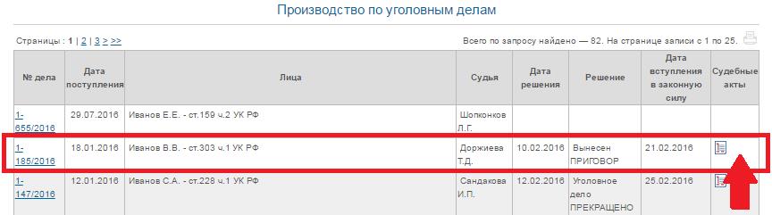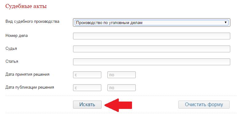 Данный вид поиска приговоров или иных судебных актов по конкретным уголовным делам возможен только при условии, когда известны номер дела, присвоенный в суде, или фамилия подсудимого.