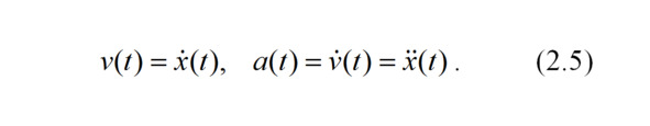 Выражения (2.2) и (2.3) можно записать как производные по времени, где первая производная по времени обозначается символом с точкой наверху, а вторая производная по времени – с двумя точками наверху: скорость есть первая производная от функции пути от времени, ускорение есть первая производная от функции скорости от времени и, соответственно, вторая производная от функции пути от времени: