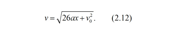 Или, извлекая квадратный корень из левой и правой части равенства (2.10), получаем выражение для скорости автомобиля v в м/с в зависимости от пути x, на котором автомобиль ускорялся или замедлялся: