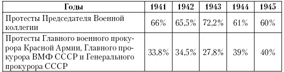 По данным Военной коллегии ВС СССР за период войны абсолютное большинство приговоров военных трибуналов было пересмотрено по протестам Председателя Военной коллегии (табл. 3)[235]: