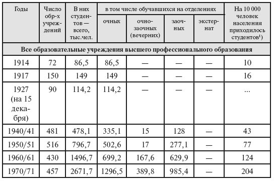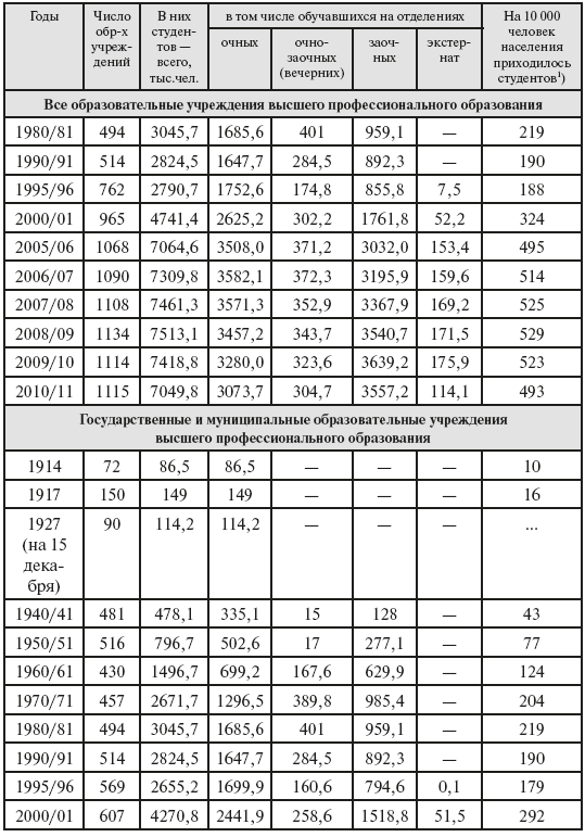 Приводим динамику численности вузов с 1914 года по 2010 годы по данным Росстатом: