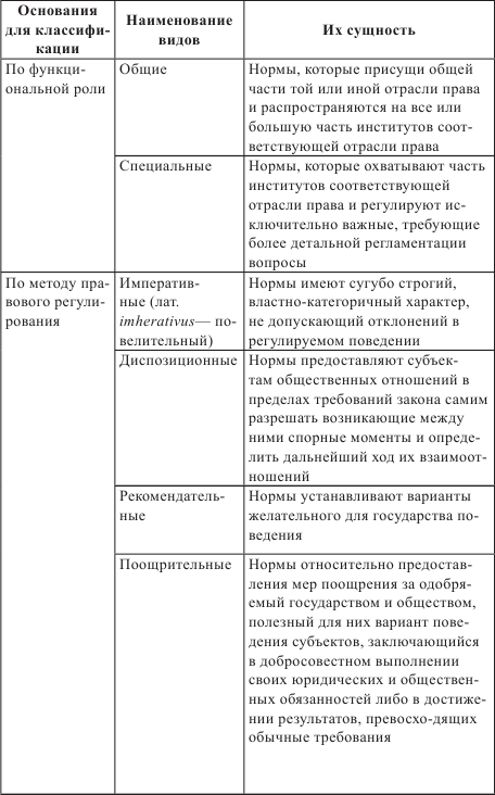 Все правовые нормы по различным критериям и основаниям могут быть разделены на определенные группы и виды: