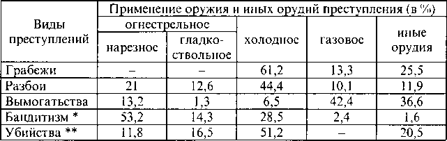 * При совершении бандитизма у отдельных членов банды может иметься газовое, помповое оружие и специально приспособленные для причинения телесных повреждений орудия и средства.