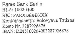 Ольга Соловьева, личность удостоверена паспортом, подписана на 3,005 акций по номинальной стоимости в 1 евро каждая, единственная управляющая компании; и