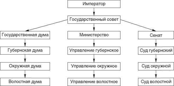Предложенная Сперанским система органов государственного управления должна была выглядеть следующим образом: