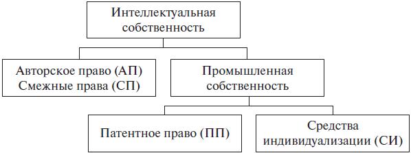 2) промышленная собственность, которая включает патентное право и права на средства индивидуализации юридических лиц, товаров, работ, услуг и предприятий.
