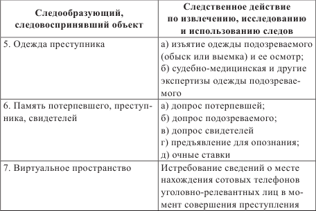 Обусловленные механизмом совершения преступления, относящегося к криминалистически определенному виду материальные, виртуальные и идеальные следы отражаются на соответствующих материальных объектах, в памяти так или иначе вовлеченных в орбиту совершения преступления лиц (потерпевших, свидетелей).