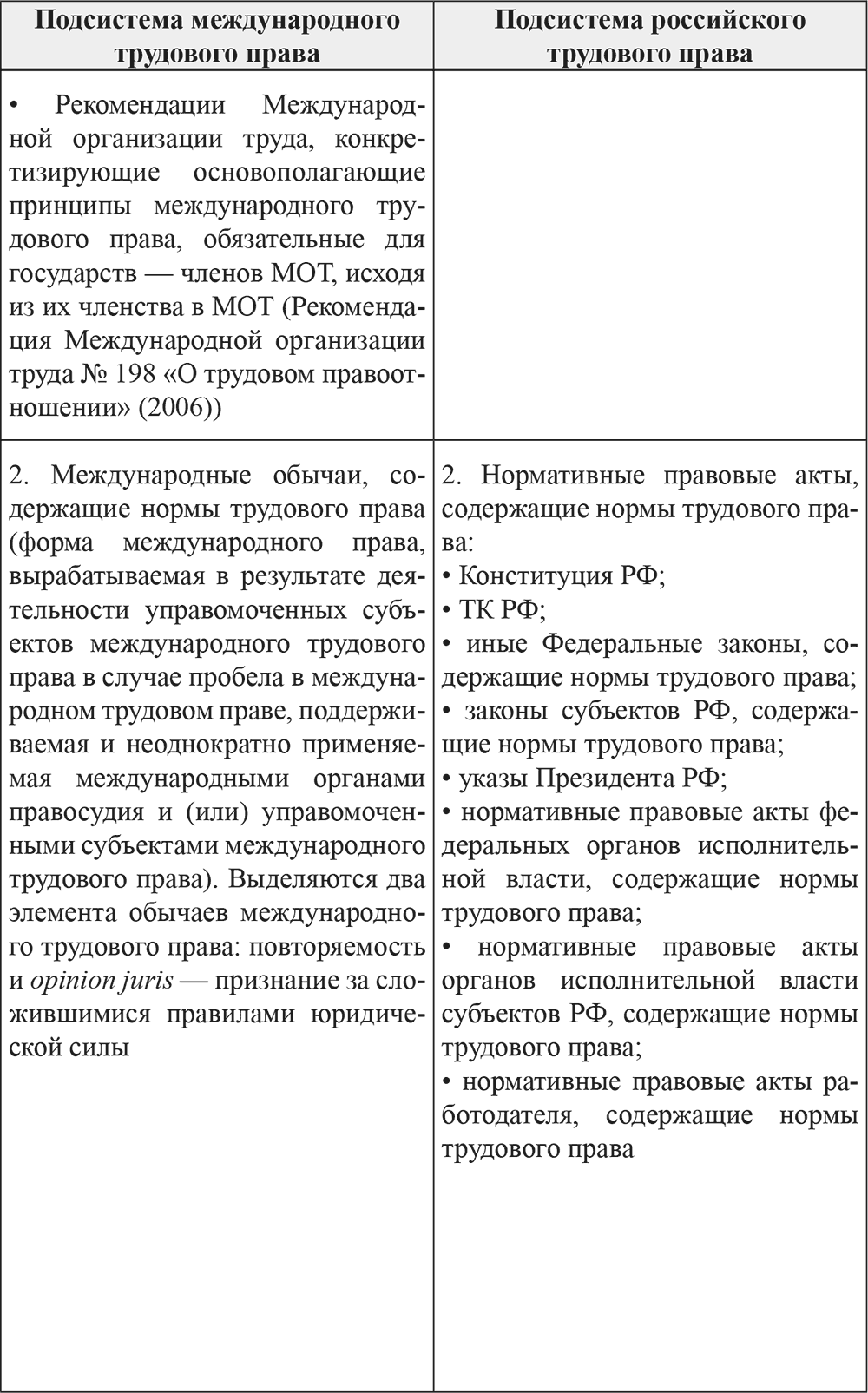 Как представляется, «практика» в России существует в «форме» основополагающих международных и национальных принципов трудового права, а также международных и национальных обычаев, содержащих нормы трудового права; «соглашения» – в «форме» многосторонних и двусторонних международных нормативных правовых договоров (конвенций, пактов и т. д.), соглашений и коллективных договоров органов государственной власти, юридических и физических лиц, содержащих нормы трудового права; «результаты деятельности правотворческих органов, управомоченных юридических и физических лиц» – в «форме» нормативных правовых актов, содержащих нормы трудового права[77].