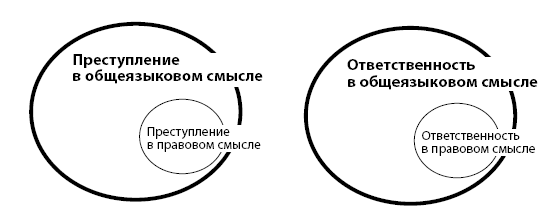 Мы в данном случае видим, что понятие «ответственность» имеет так же, как и понятие «преступление», два значения – общеязыковое, обычное и второе – узкоправовое.