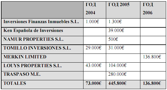 Господин Оканья также получал вознаграждение от “Inversiones Finanzas Inmuebles SL” как должностное лицо и сотрудник с 2002 по 2005 год включительно.