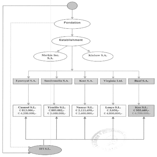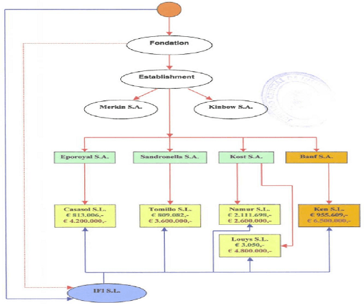 Деньгами, поступившими из стран «налогового рая», оплачивались траты, предназначенные на амортизацию капитала по договорам ипотечных кредитов испанских компаний. Этот способ имел целью ввести деньги незаконного происхождения на легальный испанский рынок через денежные переводы компаний нерезидентов испанским компаниям, владельцам объектов недвижимости, которые приобретены в ипотеку вышеописанным способом.