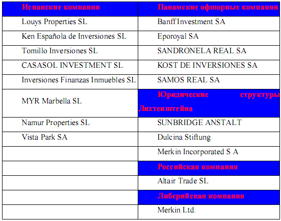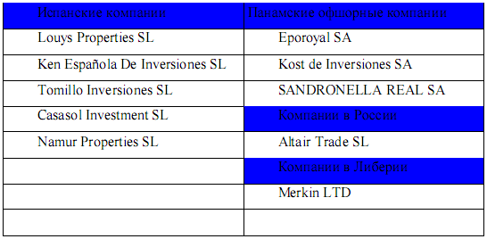 Цель создания этого компании Сергеем Кузьминым и Леонидом Хазиным состоит только в выполнении ею функции управляющей компании, руководящей испанскими юридическими лицами, акциями которых, в свою очередь, владеют компании-резиденты Панамы, которые представляет Кузьмин.