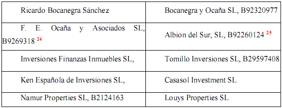 Согласно налоговой форме 190, в “Inversiones Finanzas Inmuebles S. L”, появляются как работники, в течение 2003 года: Хосе Гальяно-Рико (Jose Galiano Rico), Рикардо Боканегра Санчес (Ricardo Bocanegra Sanchez ) и Франсиско Оканья Пальма (Francisco Oca?a Palma) (Р1401ДОК7 21, 22.).