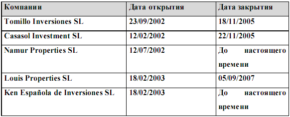 “Inversiones Finanzas Inmuebles, S. L.” не осуществляла на территории Испании никакой деятельности. Создана только лишь для приобретения акций испанской компании.