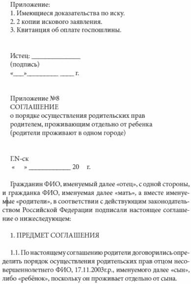 3.3. Родители взаимно обязуются поддерживать в присутствии ребенка добрые дружеские отношения, не обсуждать в присутствии ребенка имеющиеся у них проблемы личных взаимоотношений, не высказываться неодобрительно о действиях друг друга.