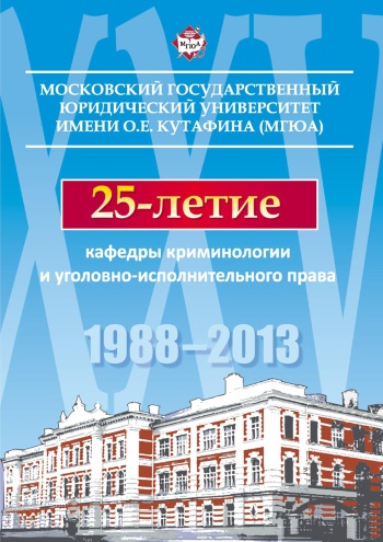 Нельзя также не отметить, что данное издание приурочено к юбилейной дате – 25-летию кафедры криминологии и уголовно-исполнительного права Московского государственного юридического университета имени О. Е. Кутафина (МГЮА), которая была образована 2 февраля 1988 г. по инициативе ректора Олега Емельяновича Кутафина решением Ученого совета ВЮЗИ.