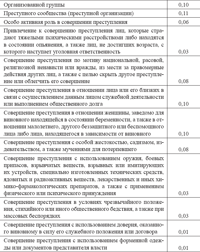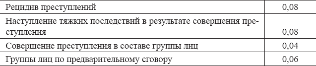 Коэффициенты влияния на наказание отягчающих обстоятельств