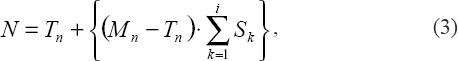 где N – окончательное наказание, Тn – типовое наказание, Мn – максимальный размер соответствующего вида наказания, установленный в санкции, Sk – коэффициент имеющегося по делу к-го смягчающего или отягчающего обстоятельства, ? – сумма величин, стоящих справа от данного символа, в данном случае коэффициентов всех имеющихся по делу смягчающих и отягчающих обстоятельств (с 1-го по i-е).