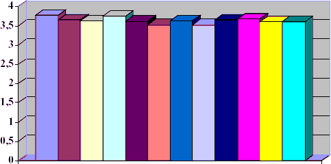С целью апробации предложенной математической модели оценки правового значения обстоятельств дела, нами вычислены наказания, которые были бы назначены при ее использовании по делам, послужившим материалом для практического исследования наказаний за кражи в 1998 г. На основе полученных данных по той же методике, которая применялась при исследовании фактически назначенных наказаний, были вычислены средние наказания и построены диаграммы (рис. 7, 8), которые дают возможность наглядно сравнить величину существующих на практике расхождений в средних наказаниях по делам, рассмотренным различными судьями, и величину расхождений в средних наказаниях по тем же делам в случае назначения наказаний с использованием предложенной модели.