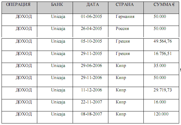 Многие из платежей, сделанных за реконструкцию в доме, и совершенных “Xorairan SL” были оплачены со счетов на Кипре, как показано в следующей таблице с описанием операций с валютного трафика: