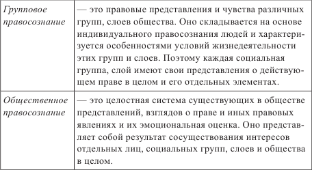 В зависимости от специфики субъекта правосознание разграничивается на три основных вида: индивидуальное, групповое и общественное.