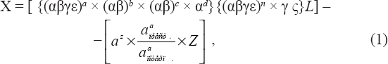 где L – математический эквивалент преступления, Z – мера личной вины вызвавшего (при внешней вызванности преступления), а остальные переменные – коэффициенты, сопоставленные автором по конкретным обстоятельствам дела.