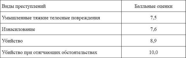 По результатам исследования были получены следующие данные об общественной опасности некоторых преступлений (табл. 5).[1331]