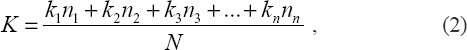 где К – общий индекс применения наказаний (индекс жесткости судебной репрессии), к1, к2, к3… кn – индексы тяжести различных мер наказания и лишения свободы на различные сроки, п1, п2, п3… пп – количество осужденных к каждой основной мере наказания, а также к лишению свободы на разные сроки, N – общее количество осужденных ко всем мерам наказания, включая условно осужденных.