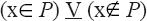 читается как «или» в исключающем значении данного логического союза, т. е. данный символ означает, что истинно может быть только одно из соединенных данным символом высказываний, одновременная истинность обоих высказываний исключается.[1319] Таким образом, измерение по шкале наименований сводится к установлению истинности одного из двух высказываний: х является элементом множества Р или х не является элементом множества Р.