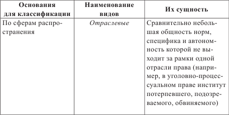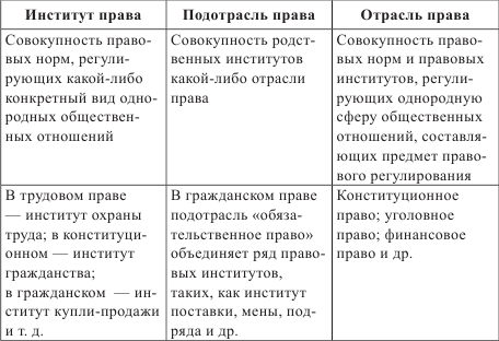 По охвату правового регулирования институт права занимает промежуточное положение между правовой нормой и отраслью права. Отрасль права включает в себя разнообразные правовые институты.