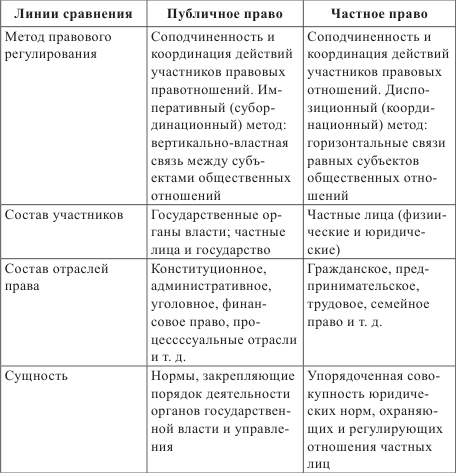 В зарубежном правоведении общепринято деление системы права на публичное и частное право, вытекающее из природы между личностью и государством.