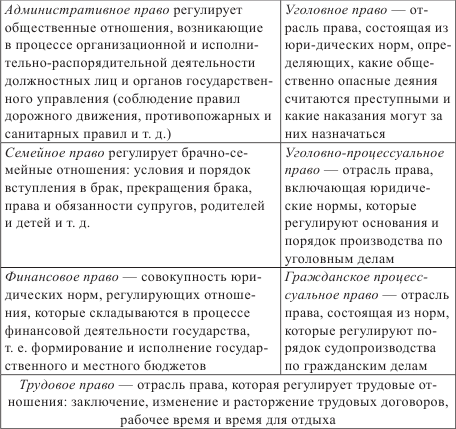 Процессуальные отрасли – уголовно-процессуальное, административно-процессуальное и гражданско-процессуальное право – устанавливают порядок рассмотрения уголовных, административных и гражданских дел.