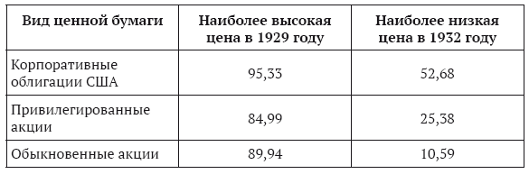 Об инвестиционной привлекательности привилегированных акций много говорят данные о средней курсовой стоимости различных видов ценных бумаг в годы Великой депрессии в США.