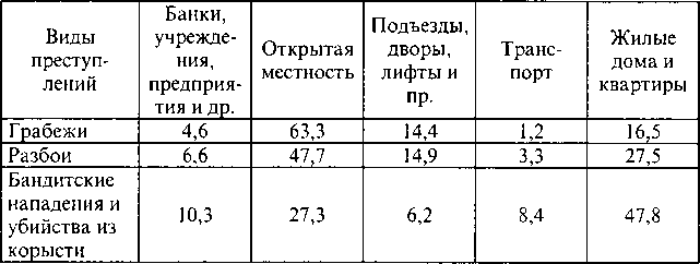 Виды корыстно-насильственных преступлений по местам нападений распределяются следующим образом (см. табл. 5).