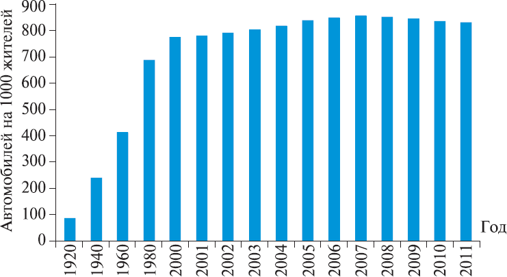 Рис. 17. Траектория автомобилизации населения США в 1920–2011 гг.