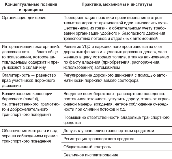 • Экономический аспект. Утверждается принцип универсальной платежной ответственности автовладельцев, т. е. компенсация негативных внешних эффектов по факту использования автомобильно-дорожной инфраструктуры за счет целевых дорожных налогов и платежей (см. приложение 2). В число общераспространенных социокультурных стереотипов входит запрет на ненадлежащее использование или, тем более, на самозахват общественного пространства.