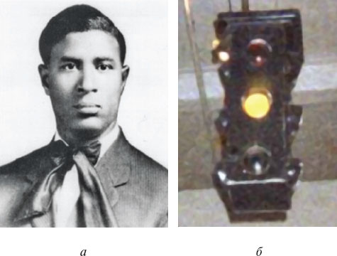 Рис. 16. Изобретатель автоматически переключаемого светофора Гэррет А. Морган (1877–1963) (а), экспонат из Henry Ford Museum (б), 1920 г.
